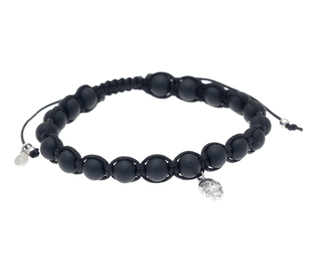 Βραχιόλι από ασήμι με καθαρότητα 925. Επιπλατινωμένο με ματ όνυχα και κορδόνι από την Gregio.