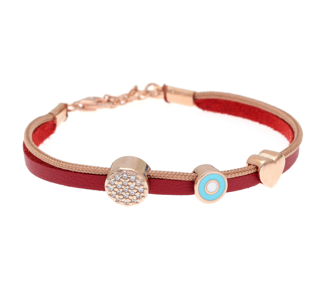 Βραχιόλι από ασήμι με καθαρότητα 925. Με ροζ επιχρύσωση & με λευκά zirconia και κορδόνι από τη Gregio