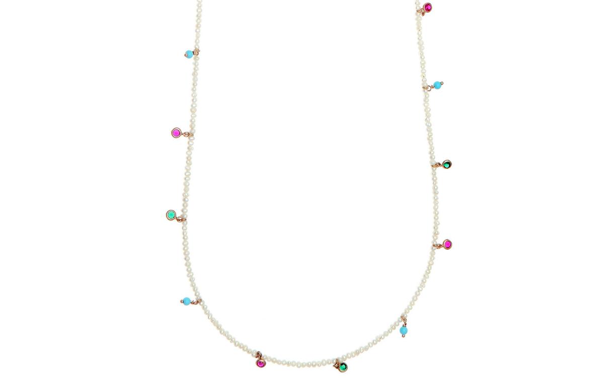Κολιέ από ασήμι, καθαρότητας 925. Με ροζ επιχρύσωση, με fresh water pearl και χρωματιστά zirconia από την Gregio!