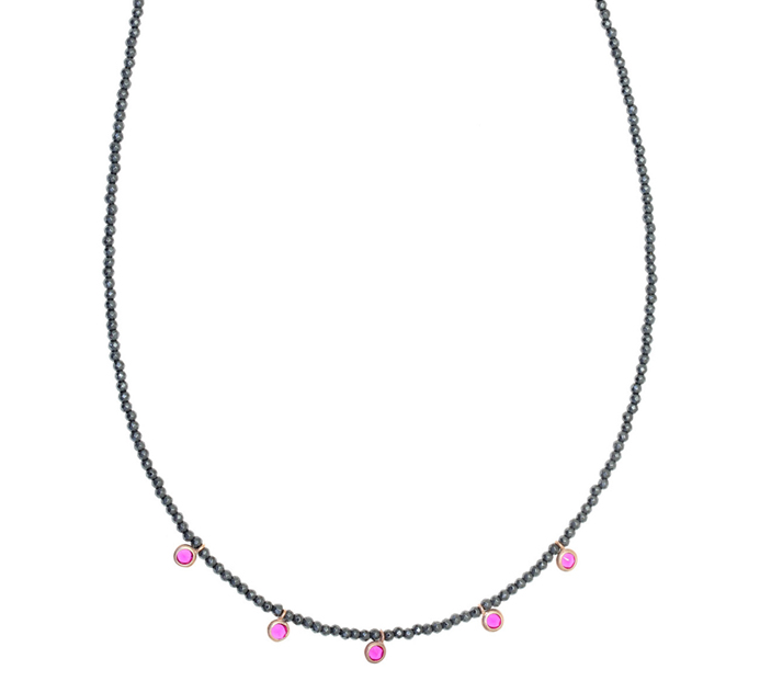 Κολιέ από ασήμι, καθαρότητας 925. Με ροζ επιχρύσωση & με hematite και χρωματιστά zirconia από την Gregio!