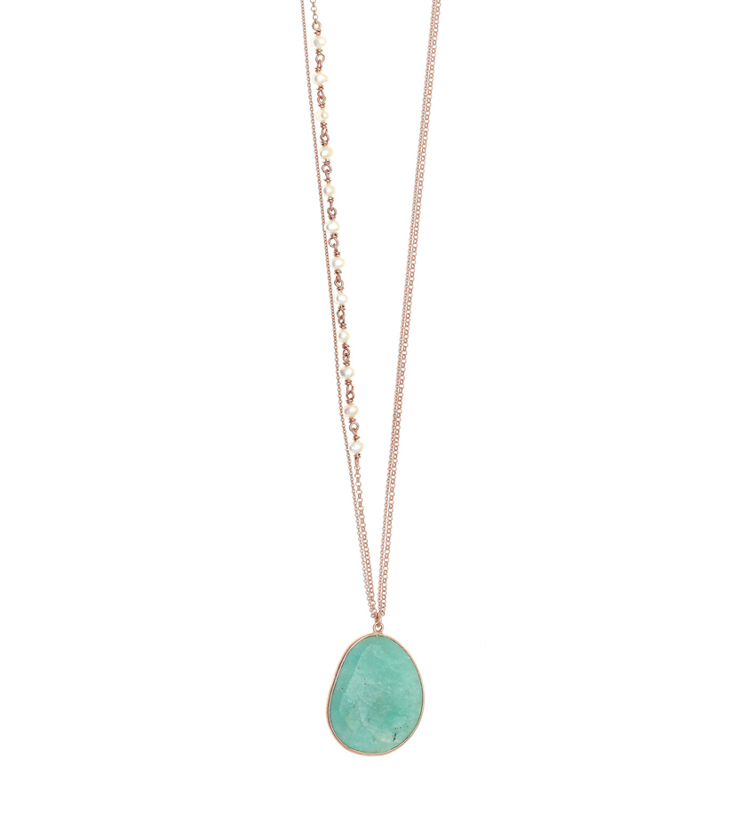 Κολιέ από ασήμι, καθαρότητας 925. Με ροζ επιχρύσωση & με fresh water pearls και αμαζονίτη από την Gregio!
