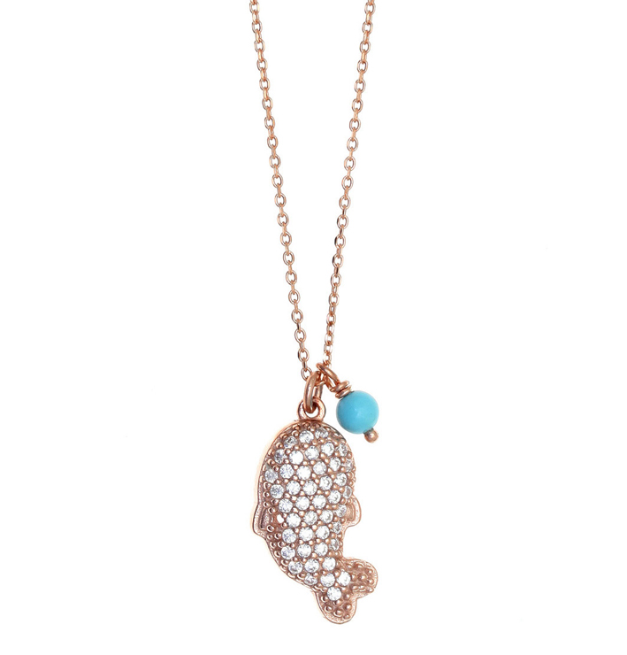 Κολιέ από ασήμι, καθαρότητας 925. Με ροζ επιχρύσωση, με zirconia και fresh water pearl από την Gregio!
