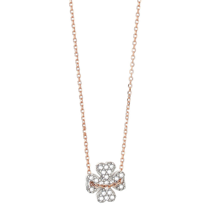 Κολιέ από ασήμι, καθαρότητας 925. Με ροζ επιχρύσωση & με λευκά zirconia από την Gregio!
