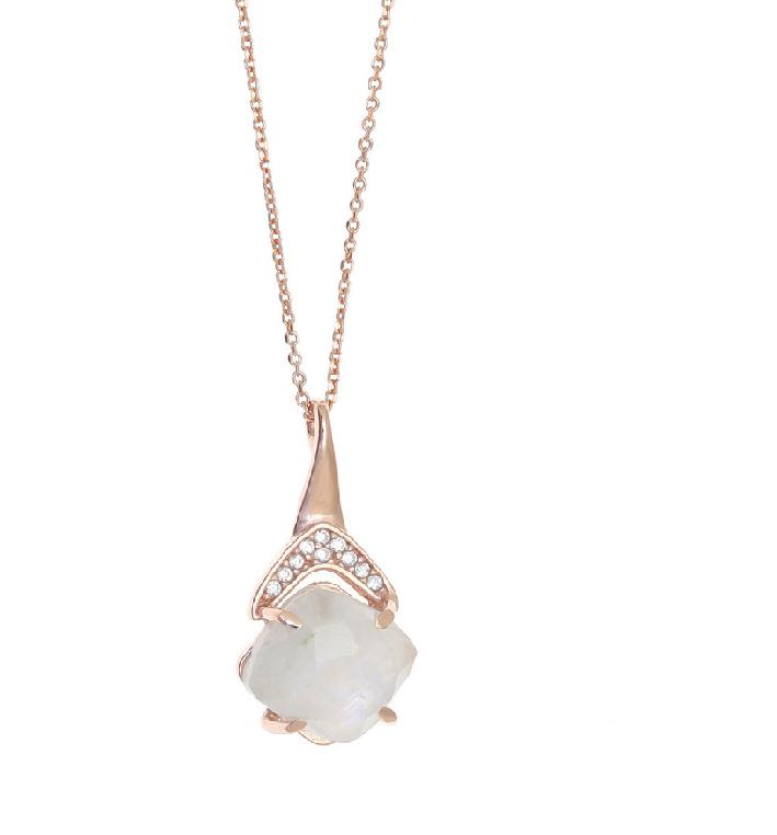 Κολιέ από ασήμι, καθαρότητας 925. Με ροζ επιχρύσωση, με moonstone και λευκά zirconia από την Gregio!