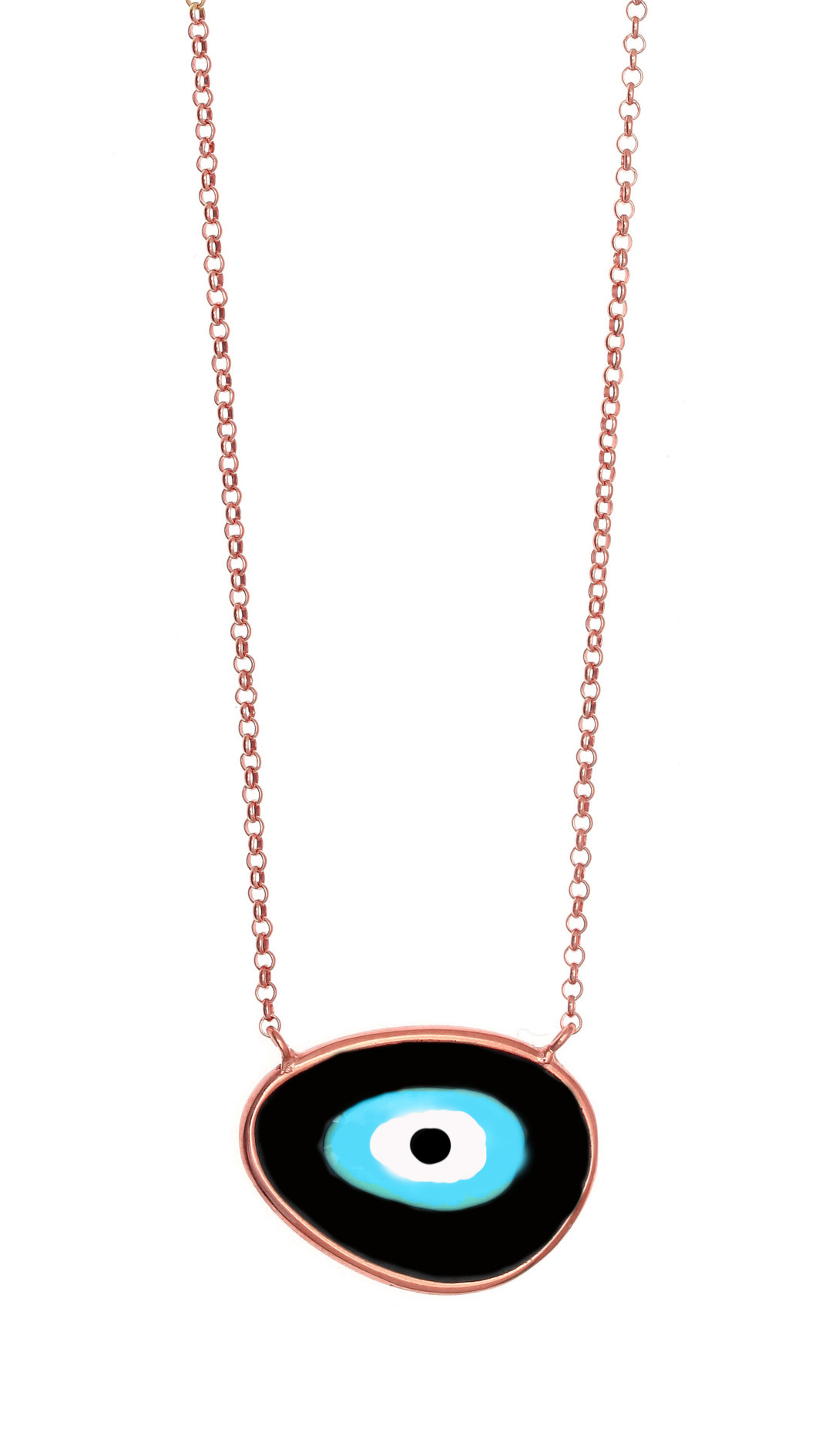 Κολιέ ασήμι 925 με ροζ επιχρύσωση & με χειροποίητο μάτι από σμάλτο.